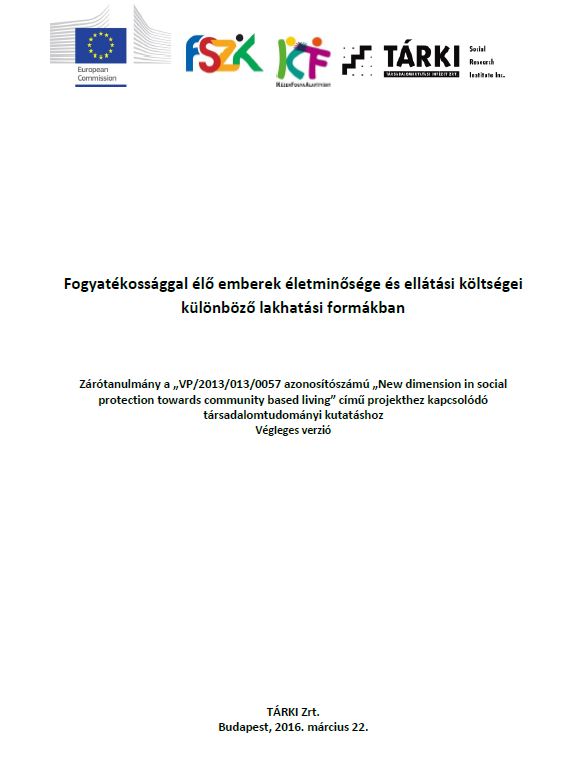 Zárótanulmány a „VP/2013/013/0057 azonosítószámú „New dimension in social protection towards community based living” című projekthez kapcsolódó társadalomtudományi kutatáshoz.